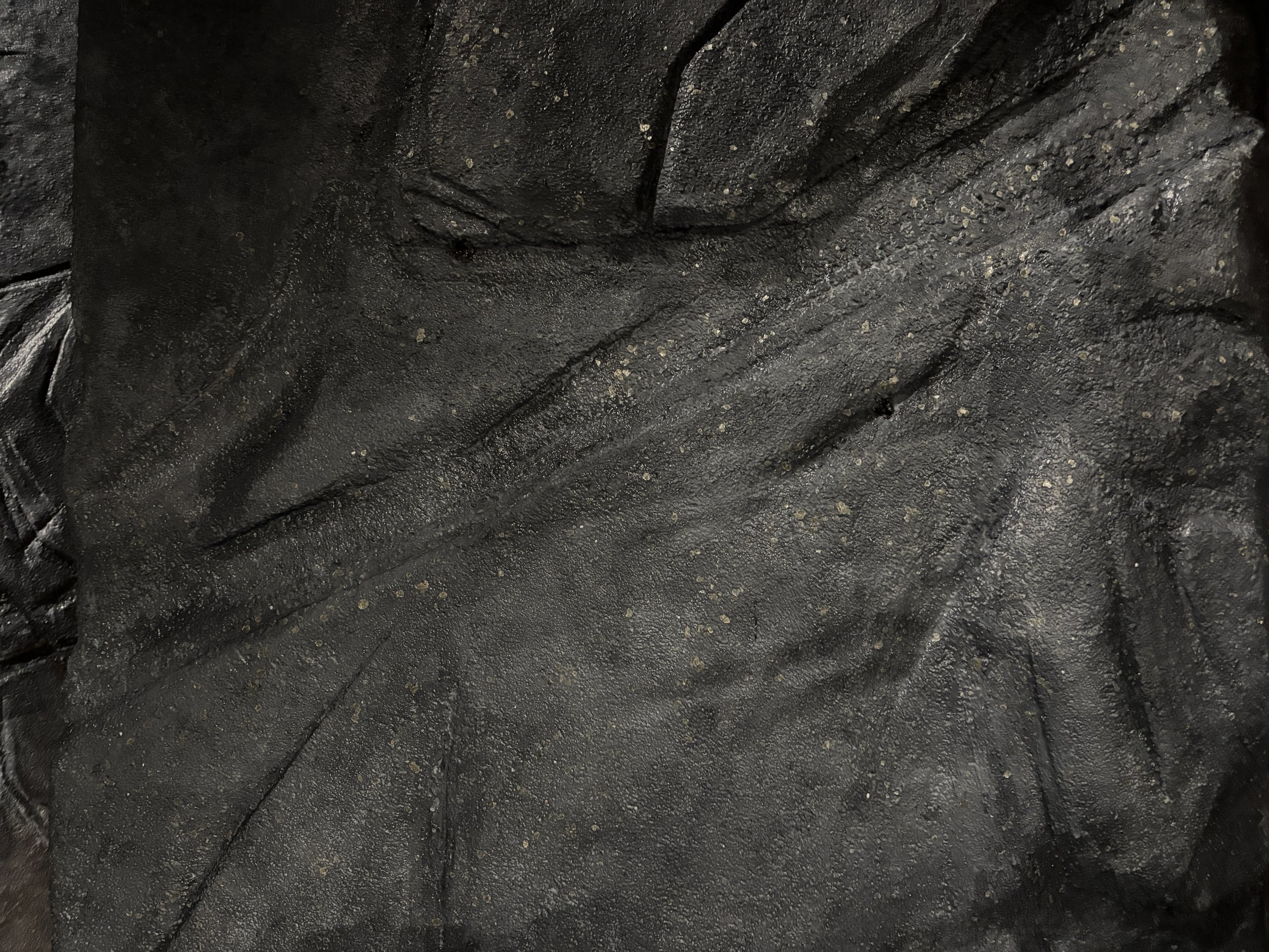 In space, we did some additional carving and treatment to blend the separate wall units together. We then applied a gloss sealer with mica flakes for some moisture and sparkle, followed by a matte sponge roll.This was repeated a couple times for the desired effect.