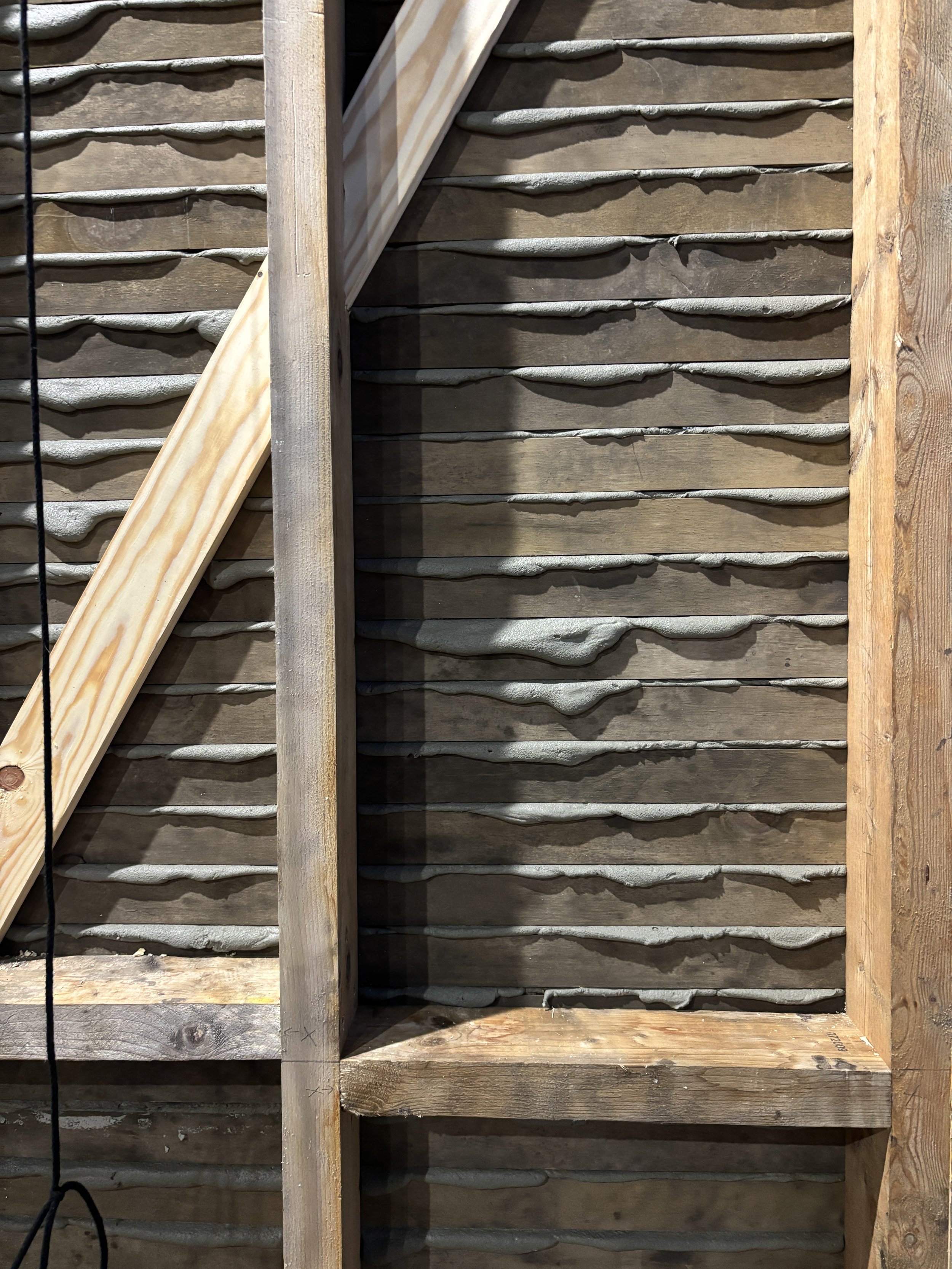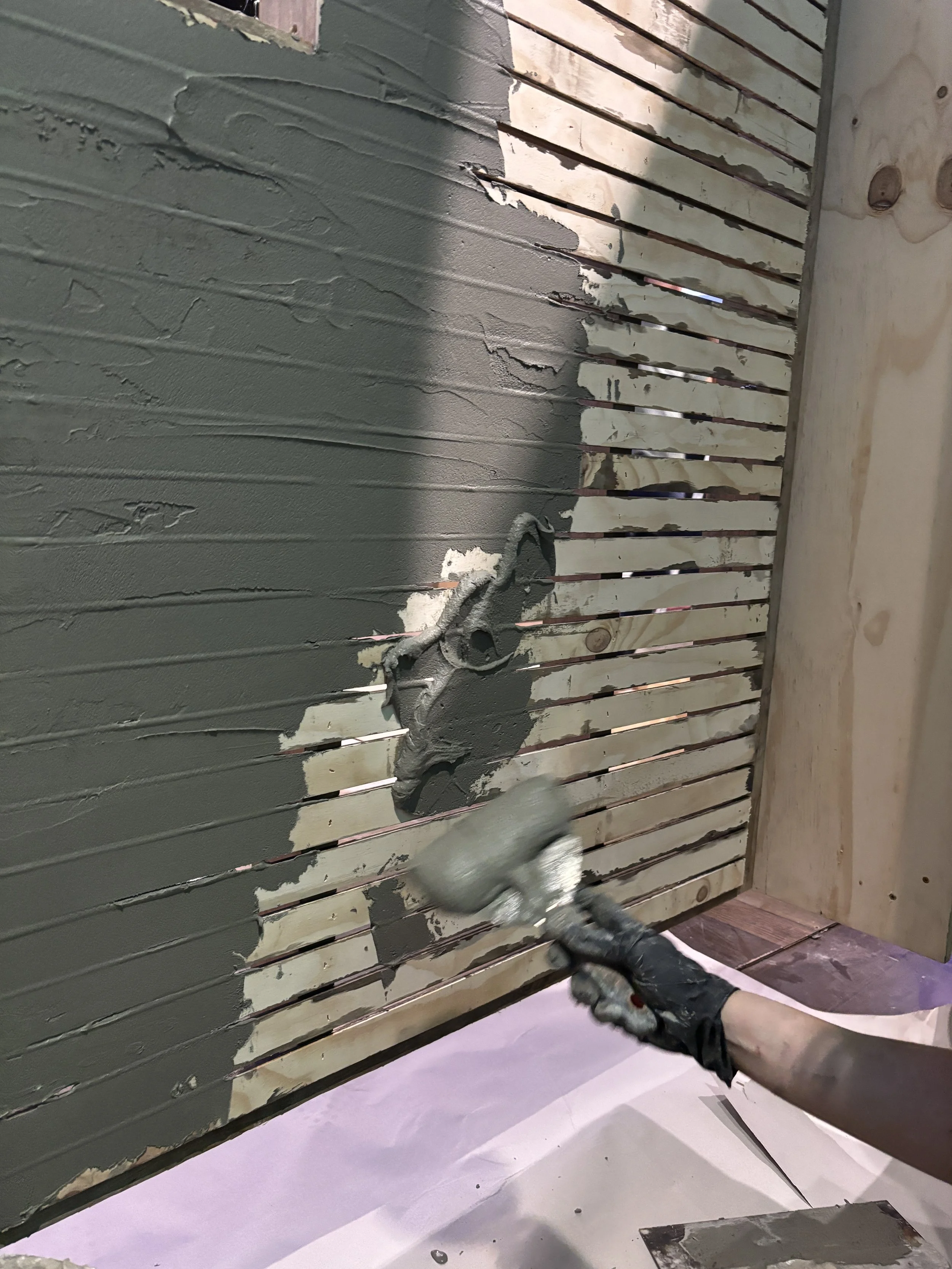after aging the wood, we applied a light weight concrete, let it dry, and aged