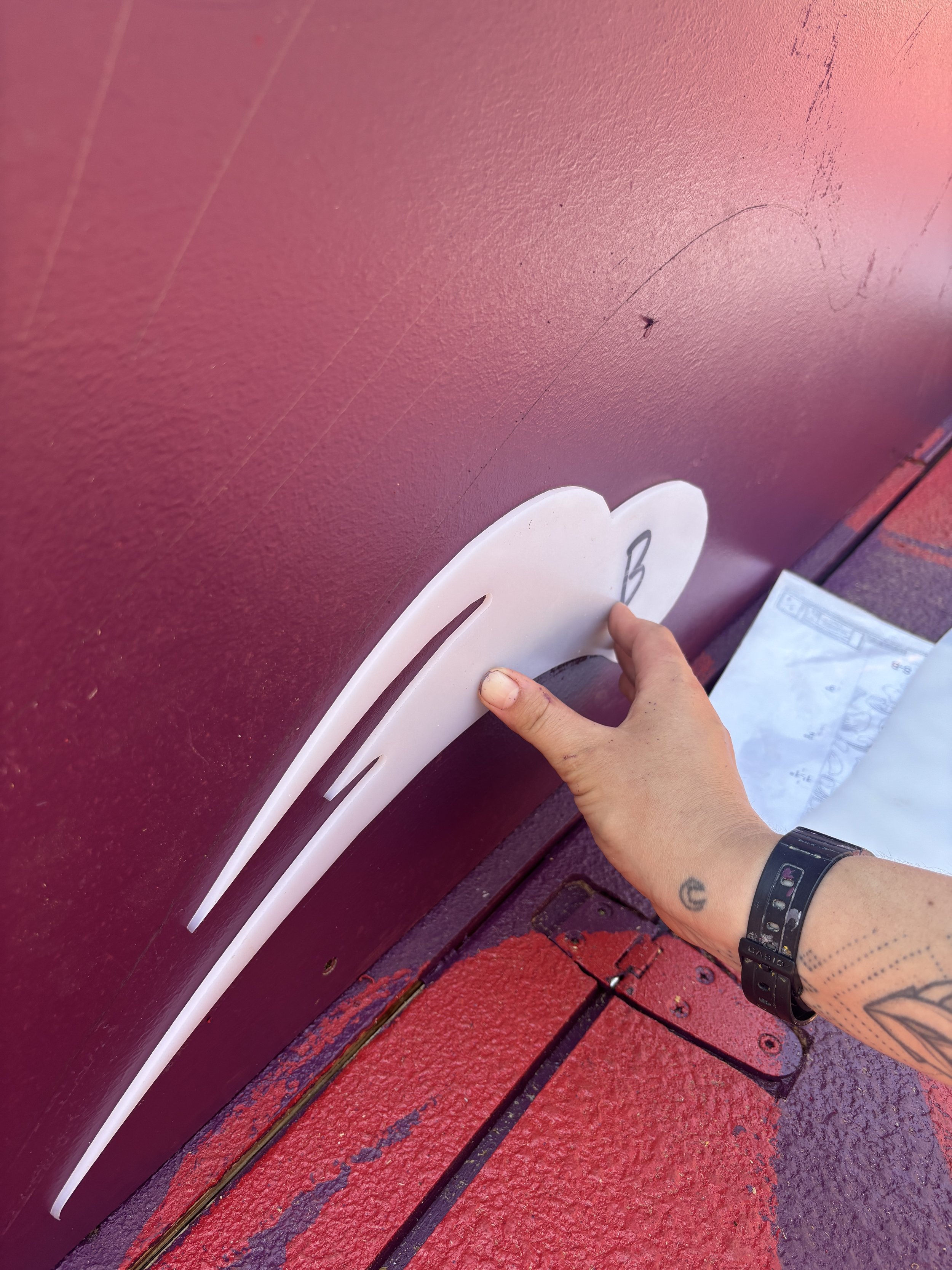 the hot tube (and two other blocks, not pictured) popped up from the deck and were made to follow the pattern on the deck. We used the stencils that were used on the floor to accomplish this